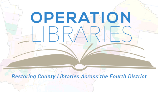 In the last three years, libraries in my district alone have seen more than 8 million people pass through their doors. More than 9 million books, videos and other library materials have been checked out. Planning is underway and I expect construction on the facilities to be completed by the time I leave office.